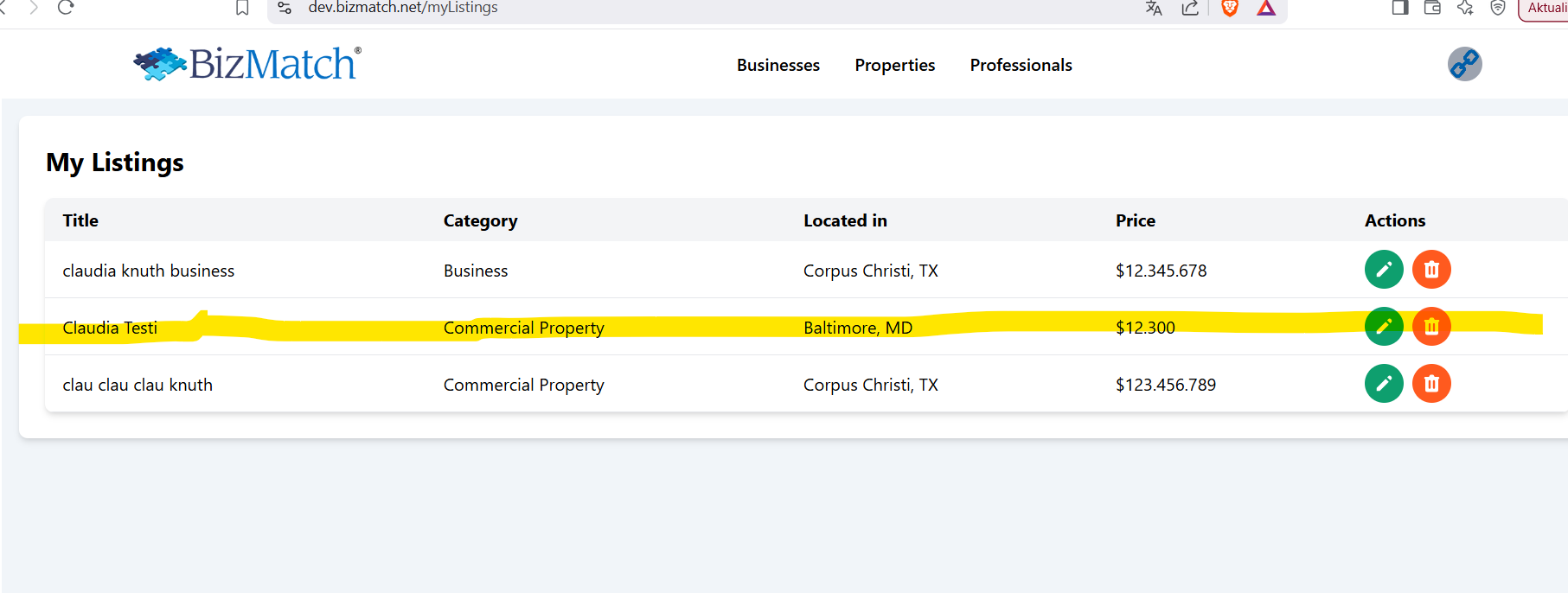 "Draftmodus"-Anzeige in "My Listings" #138