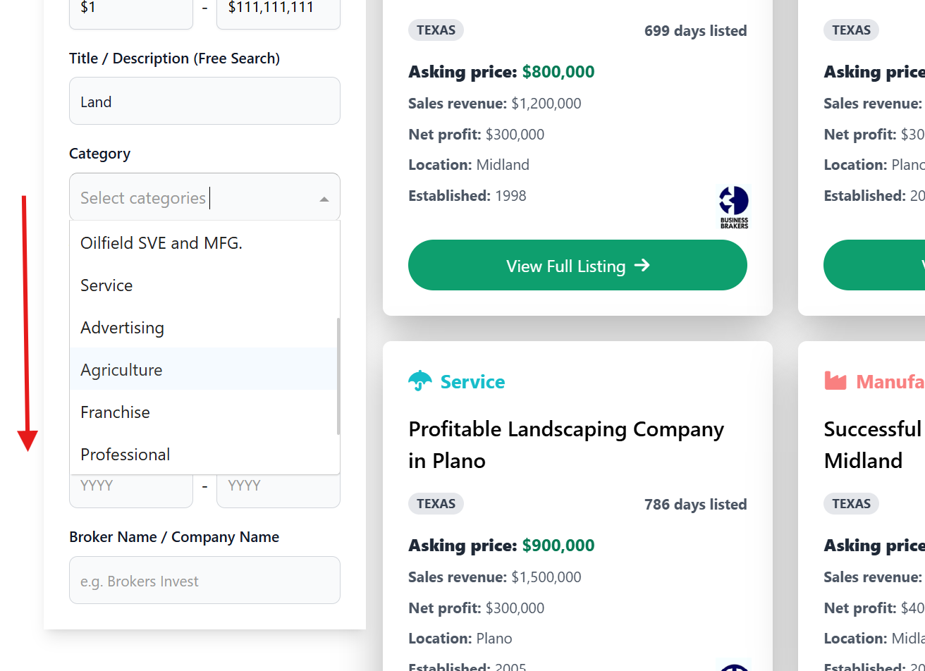 bei Business und bei Proberty Filter