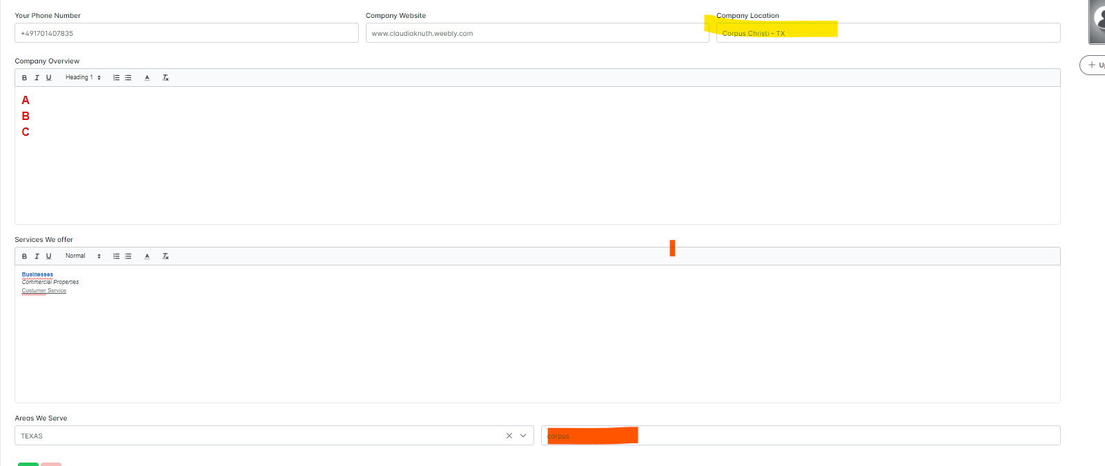 Oben wird bei Eingabe z.B. Corpus Christi vorgeschlagen (Gelb) und (orange) nciht