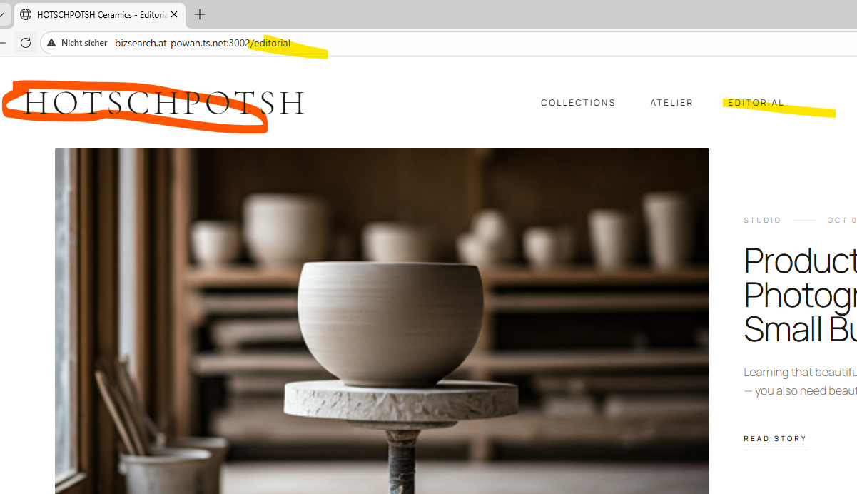 ich bin zB im Editoral (gelb) und wenn ich auf den Namen (rote Makierung) klicke, um wieder auf die Landingpage zu gelangen, funktioniert dies nicht: